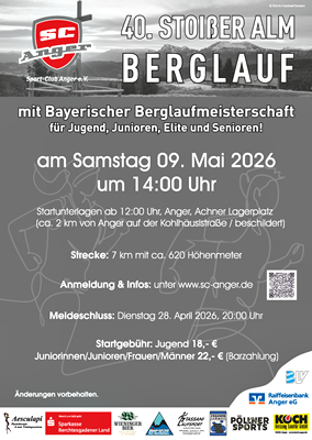 Wenn am 9. Mai im schmucken Anger der Startschuss zum 40. Stoißeralm Berglauf fällt, dann hat das etwas Besonderes. Denn neben dem für viele trainierte LäuferInnen machbaren Lauf auf die Alm mit herrlichem Panoramablick, werden alle bisherigen Sieger eingeladen und erwartet. Die Organisation des SC Anger um Wolfgang Klinger steht und freut sich auf viele Teilnehmer und Zuschauer.